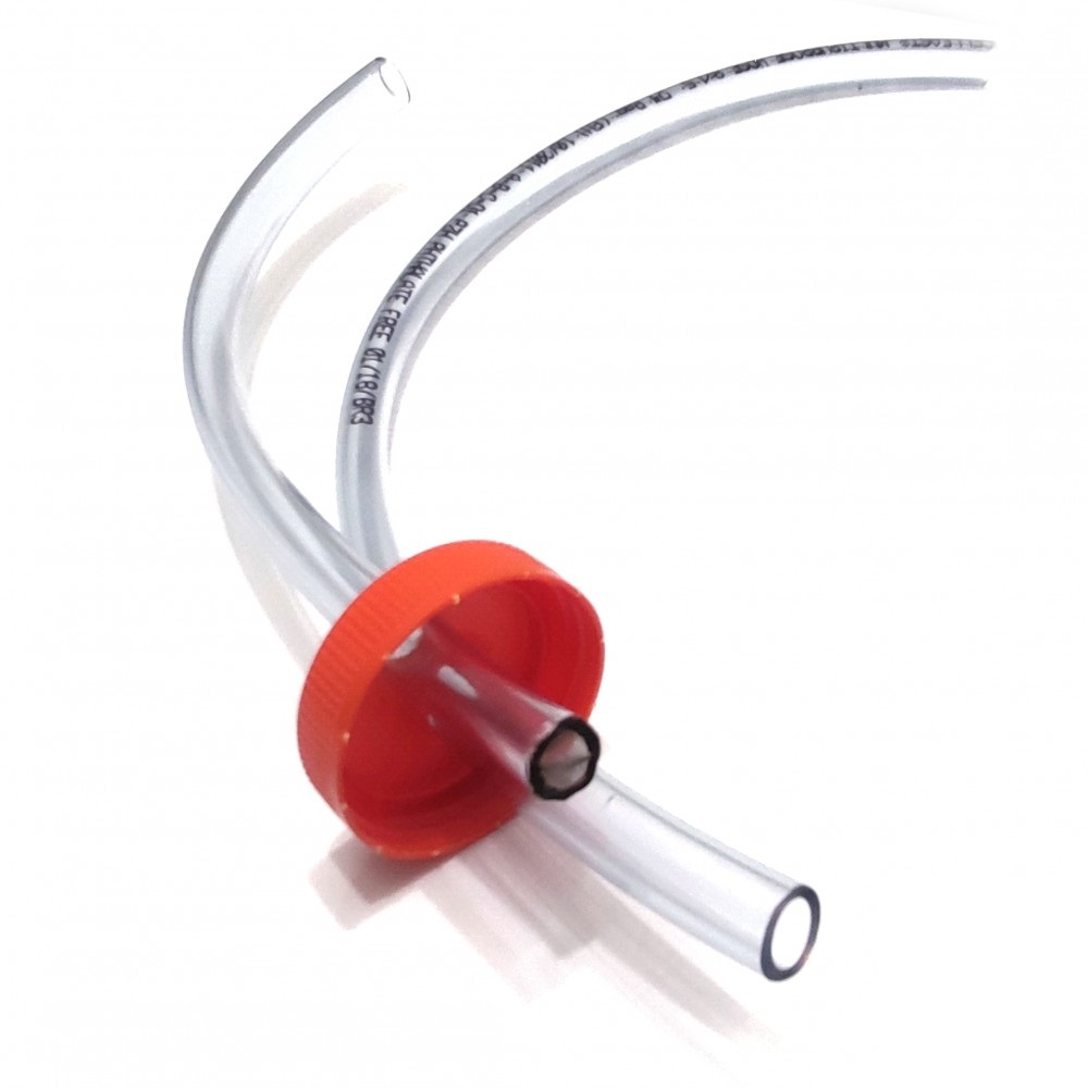 Vhodnou nádobou pro výrobu exhaustoru je PET lahvička od džusu s tvrdším obalem. Na trhu jsou na výběr lahvičky buďto se standardním malým víčkem nebo víčkem větším. Aby bylo možné použít větší hadičky o průměru 1 cm vybírejte pokud možno ty větší. Poté se do víčka vrtákem vyvrtají dvě díry o něco menší než průměr hadičky, které se těsnou dírou protáhnou. Hadička, jíž procházejí mravenci, by neměla být příliš dlouhá, maximálně 40 cm. Vybírejte certifikované hadičky jasně deklarující, že jsou bezftalátové. Hadička, kterou ústy nasáváme vzduch, se musí na druhém konci schovaném v lahvičce obalit filtrem, aby se zamezilo vdechnutí mravenců do úst. Jako filtr lze použít například punčochu či jemnou síťku. Přichycení lze jednoduše provést například tavnou pistolí, nebo úzkou elektrikářskou páskou. Doporučuji také označit si fixem hadičku, kterou se nasávají mravenci, a kterou budete ústy vysávat. Můžete totiž v zápalu boje skončit s pusou plnou mravenců 🙂.